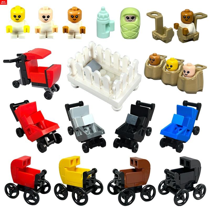 MOC Bricks Baby infant stroller carriage feeding-bottle cradle Educatinal Building Blocks Kids Girls Toys Gift — купить товар онлайн с бесплатной доставкой по всему миру!
