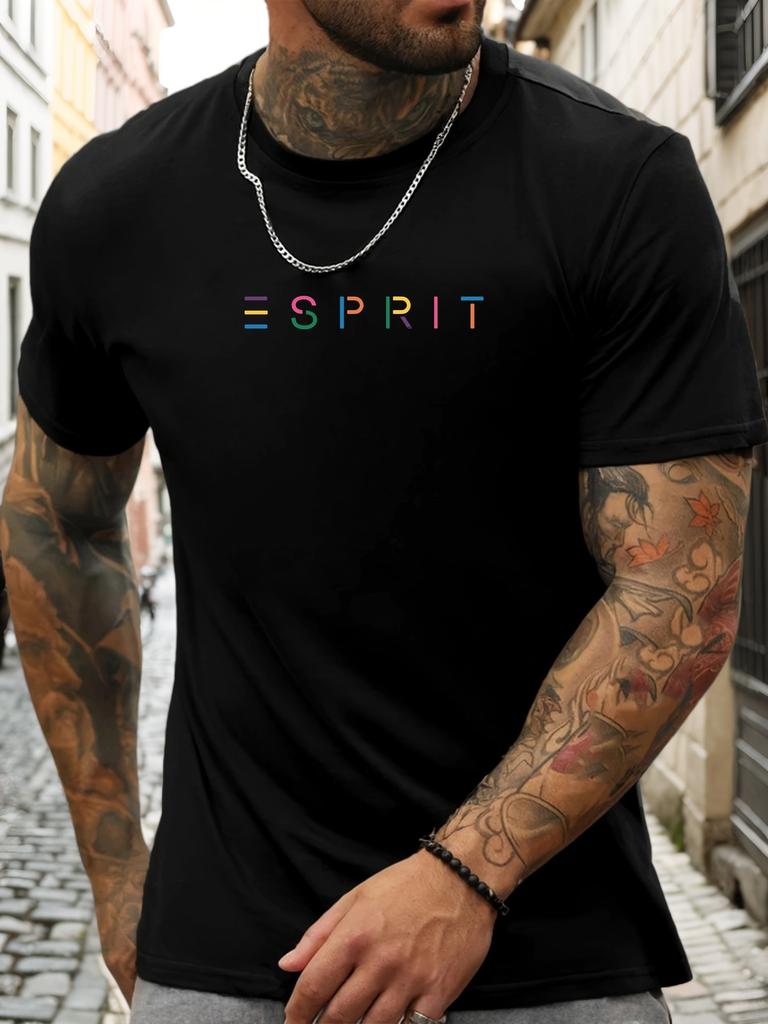 Short Sleeve TShirt ESPRIT Mens 100 Cotton Pattern Printed Shirt Summer Round Neck Breathable Casual Fashion Cool Tee