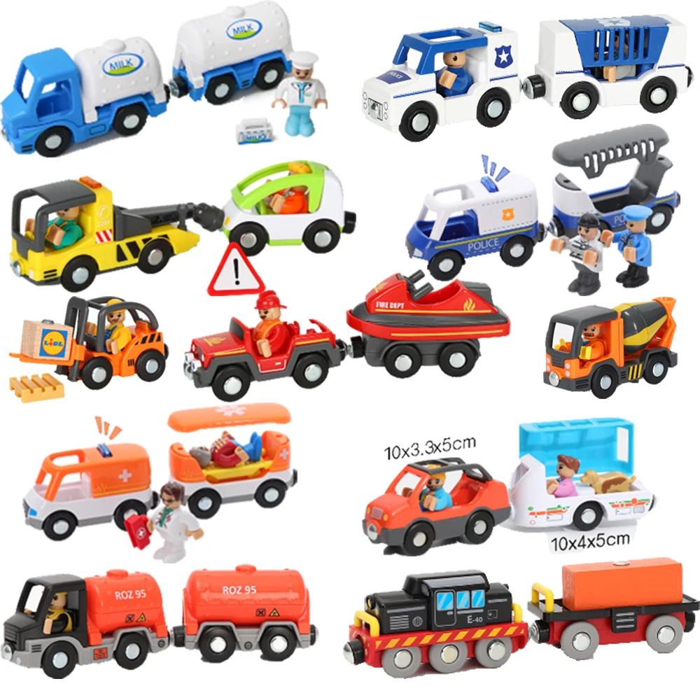 City Electric Locomotive Magnetic Train Diecast Slot Fire Truck Police Cars Fit Brio Wooden Train Railway Track Toys For Kids