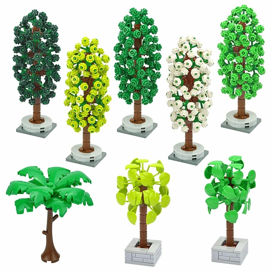 MOC Городские Деревья Строительные Блоки Сосна Растение Набор Ель Ферма Уличная Сцена Вид на Сад Сборка 3778 Кирпичей Образовательный Детский Игрушка