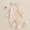 Боди с принтом бабочек, длинным рукавом и бантом - Хлопковый в рубчик для новорожденных, Весенне-осенний стиль