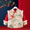 Детский вельветовый комбинезон в китайском стиле: Водонепроницаемый, грязеотталкивающий, двусторонний фартук в стиле тан-сюй для мальчиков и девочек, идеально подходит для осени и зимы.
