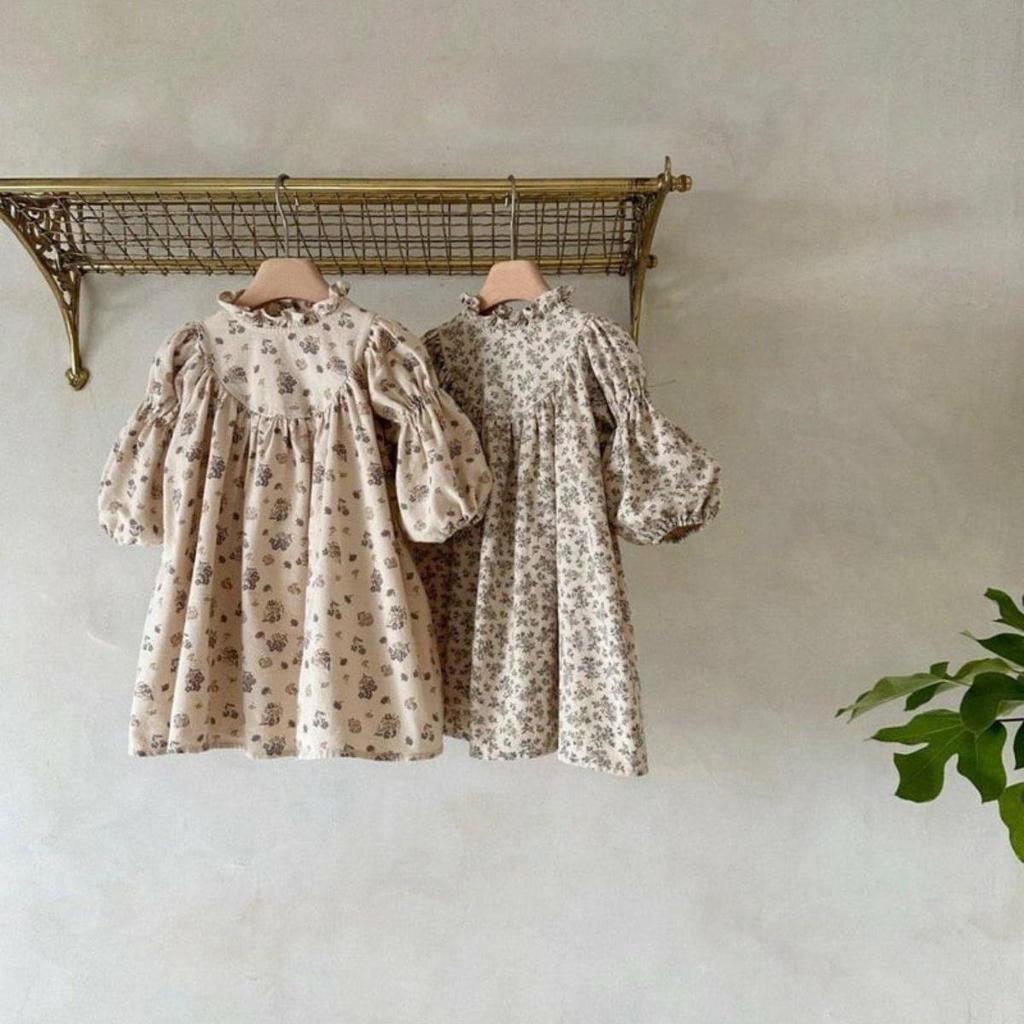 Весеннее ретро-платье для девочки, принцессы из королевского двора, с цветочным принтом и воротником-бутоном.