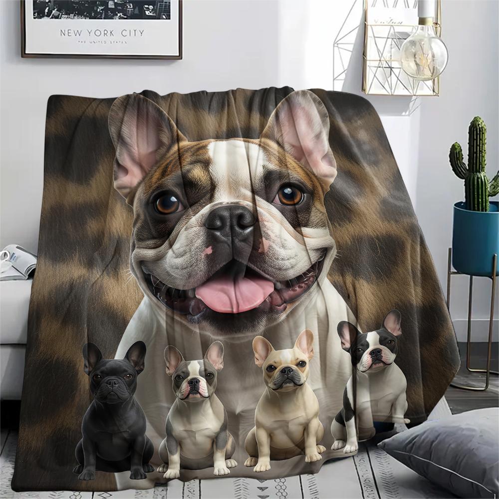1 шт. Фланелевое одеяло с принтом французского бульдога, Высокое качество, Удобное для всех сезонов, Декор для дома, Тепло и уют, Идеально для подарков