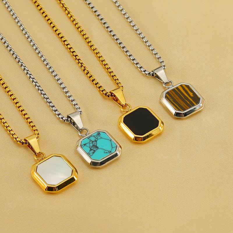 Хит продаж титановая сталь хип-хоп бирюзовый кулон мужской и женский геометрический европейский и американский модный нетускнеющий ожерелье украшение