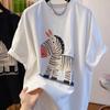 Женская Унисекс Оверсайз Футболка с Коротким Рукавом Мультяшный Принт Зебры Повседневный Белый Топ