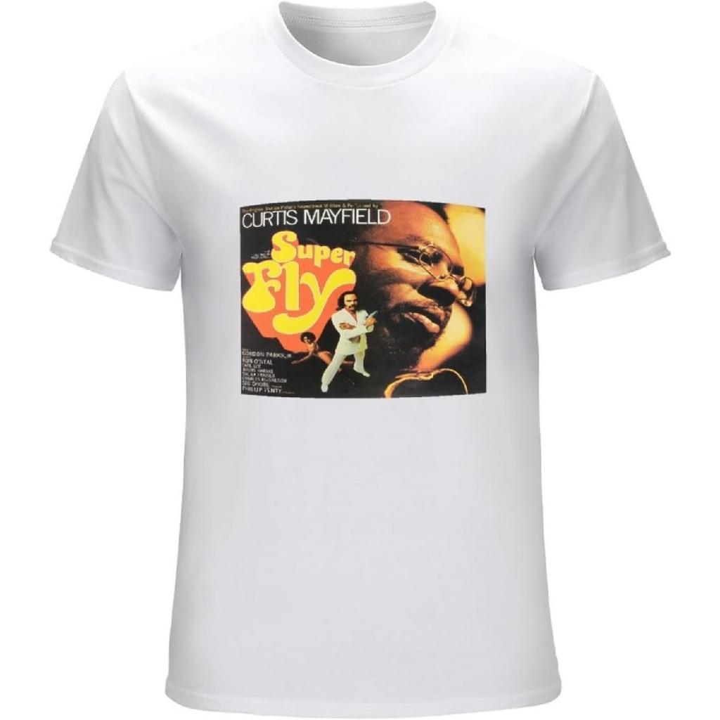 R_yes Men's Curtis Mayfield T Shirt Superfly Vinyl Cd Cover Tee White — купить товар онлайн с бесплатной доставкой по всему миру!