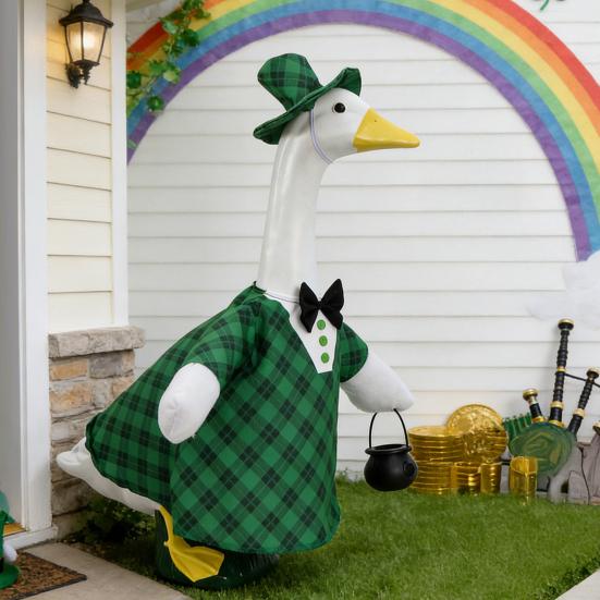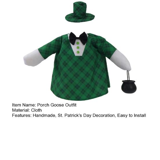 1 Set St. Patrick's Day Porch Goose Outfits Outdoor Garden Lawn Yard Goose Statue Costume Hat Black Carrying Basket Holiday Dress-up Clothing