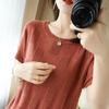 Летняя Новая Тонкая Вязаная Футболка с Коротким Рукавом из Чистого Хлопка для Женщин, Свободный Нижний Топ с Круглым Вырезом и Рукавом Три Четверти — купить товар онлайн с бесплатной доставкой по всему миру!