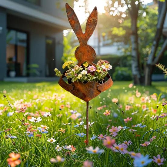 Timeless Country Garden Charm: Featuring a detailed bunny silhouette finished with a realistic rust patina, this vintage-style metal ornament adds authentic farmhouse warmth to any outdoor setting. Its rustic design evokes nostalgic country charm, making it a standout decorative piece that complements natural and traditional garden themes beautifully.