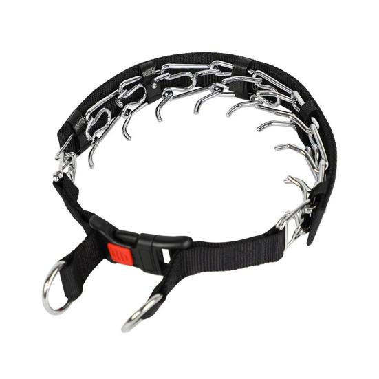 Удавка для собак: Сочетая функциональность с элегантным стилем, ошейник-мартингейл оснащен встроенной цепочкой из нержавеющей стали, которая обеспечивает стабильность и мягкую коррекцию.. Он равномерно распределяет давление вокруг шеи, имитируя естественное руководство матери-собаки, эффективно отучая от тяги или лая без причинения боли.. Эта низкопрофильная конструкция обеспечивает комфорт, сохраняя при этом эффективную коммуникацию между владельцем и собакой во время тренировок или ежедневных прогулок.