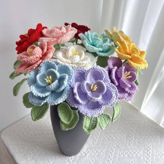 Безопасный и без запаха состав: В отличие от живых цветов, которые могут вызывать аллергию или выделять запахи, эти вязаные крючком цветы абсолютно безопасны и не имеют запаха.. Их нетоксичные материалы делают их подходящими для домов с детьми или домашними животными, одновременно предлагая чистый и свежий декоративный вариант.