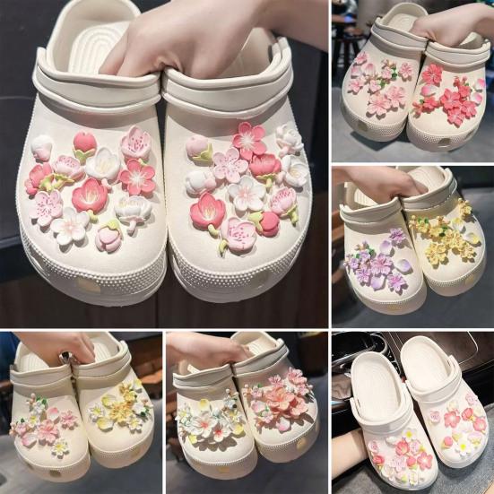 Реалистичные Цветочные Детали И Текстуры: Каждый шарм демонстрирует замысловатые 3D-изображения цветущей вишни с реалистичными лепестками и текстурами.. Детальное мастерство добавляет глубину и элегантность, позволяя вашей обуви выделяться естественным, художественным стилем, который передает красоту весенних цветов.