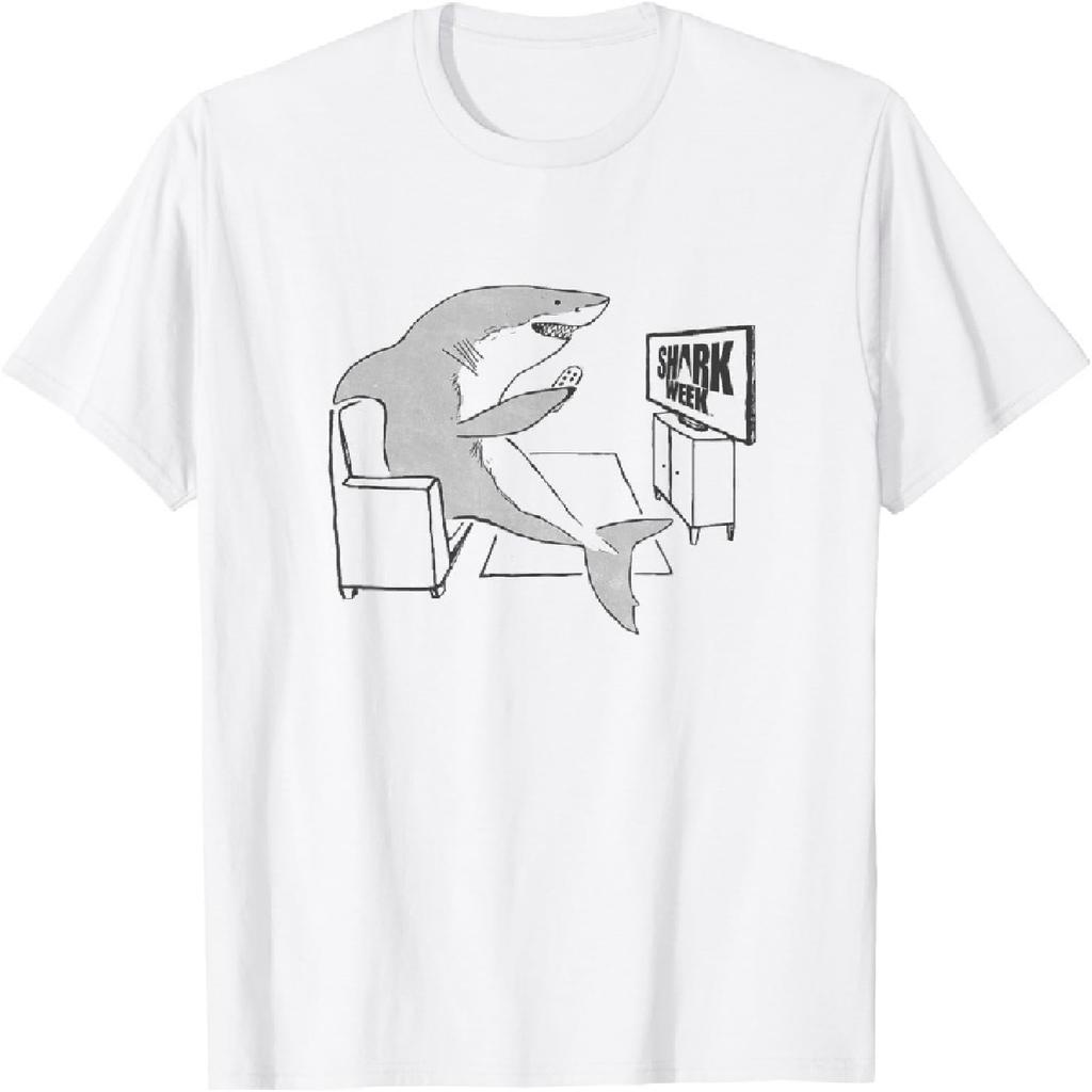 Неделя акул Акула Картошка Белая акула Диван Линейный рисунок Футболка