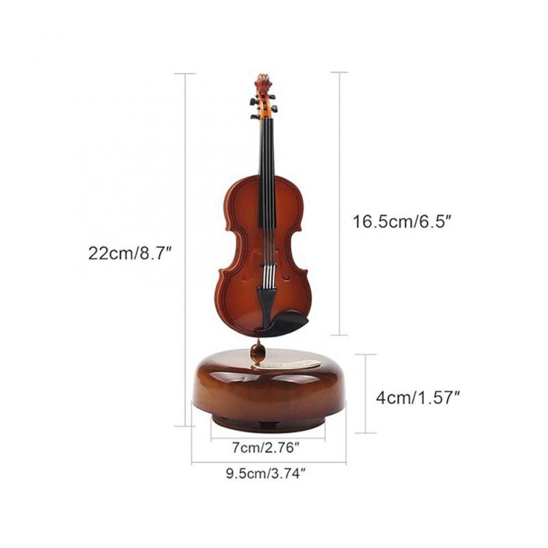 Violin Music Box, Vintage Music Box with Rotating Base, Classic Instrument Replica, Handmade Model, Birthday Gift