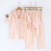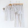 2026 Новый весенне-летний женский комплект пижамы 100% хлопковый креп Короткий рукав+Шорты+Брюки 3-piece Тонкий кардиган Домашняя одежда Женская