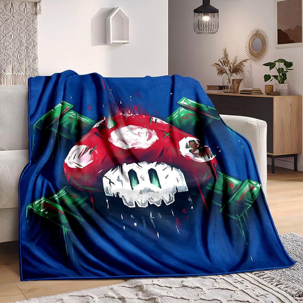 1pc Mario Mushroom Cozy Print Blanket Lightweight Warm Flannel Throw Blanket For Sofa, Bed, Living Room — купить товар онлайн с бесплатной доставкой по всему миру!