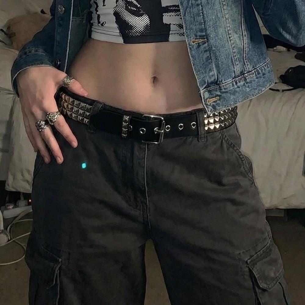 Vintage Punk Rivet Belt Stainless Steel Buckle Y2K Pyramid Belt Metal Gothic Waistband Rock