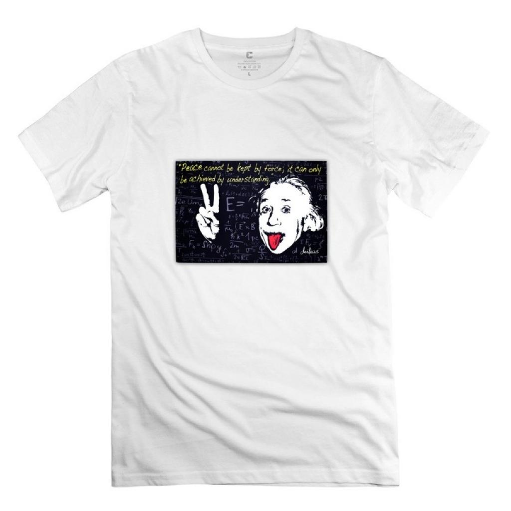 StaBe Man's Albert Einstein T-Shirt Unique Funny S White