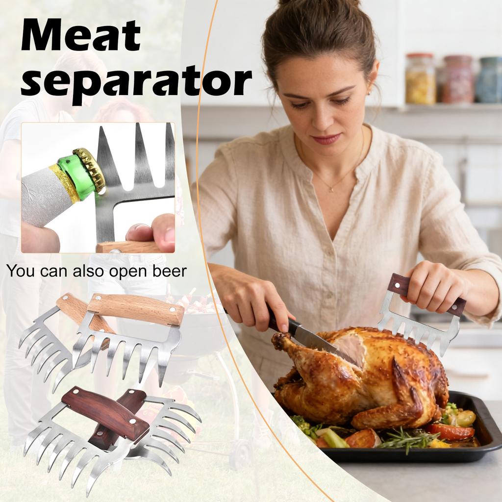Meat Handler Shredder Claws Set Of 2 - Wood Stainless Steel BBQ Pulled Pork For Shredding Handing Carving Food — купить товар онлайн с бесплатной доставкой до всему миру!