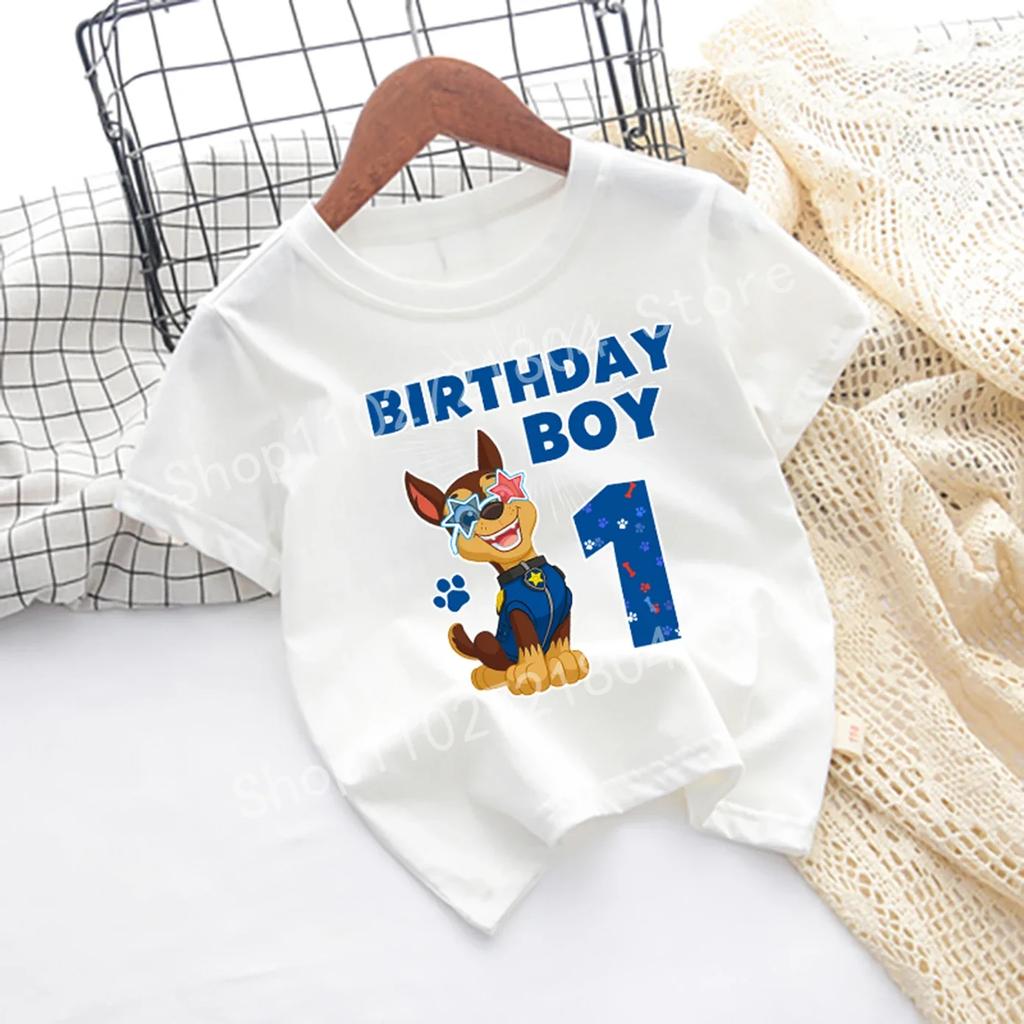 Футболка Щенячий патруль с номером, короткий рукав, круглый вырез, хлопок, одежда на день рождения для мальчика, милый мультяшный дизайн, модная печать в стиле аниме, хип-хоп топы