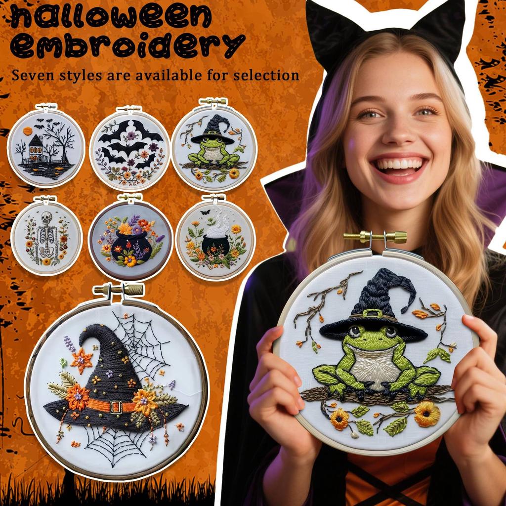 Floral Witch Hat Embroidery Kit Halloween Cross Material Set With Flower Pumpkin Patterns, DIY Hand Needlepoint Embroidery Craft Kit For Beginn — купить товар онлайн с бесплатной доставкой по всему миру!