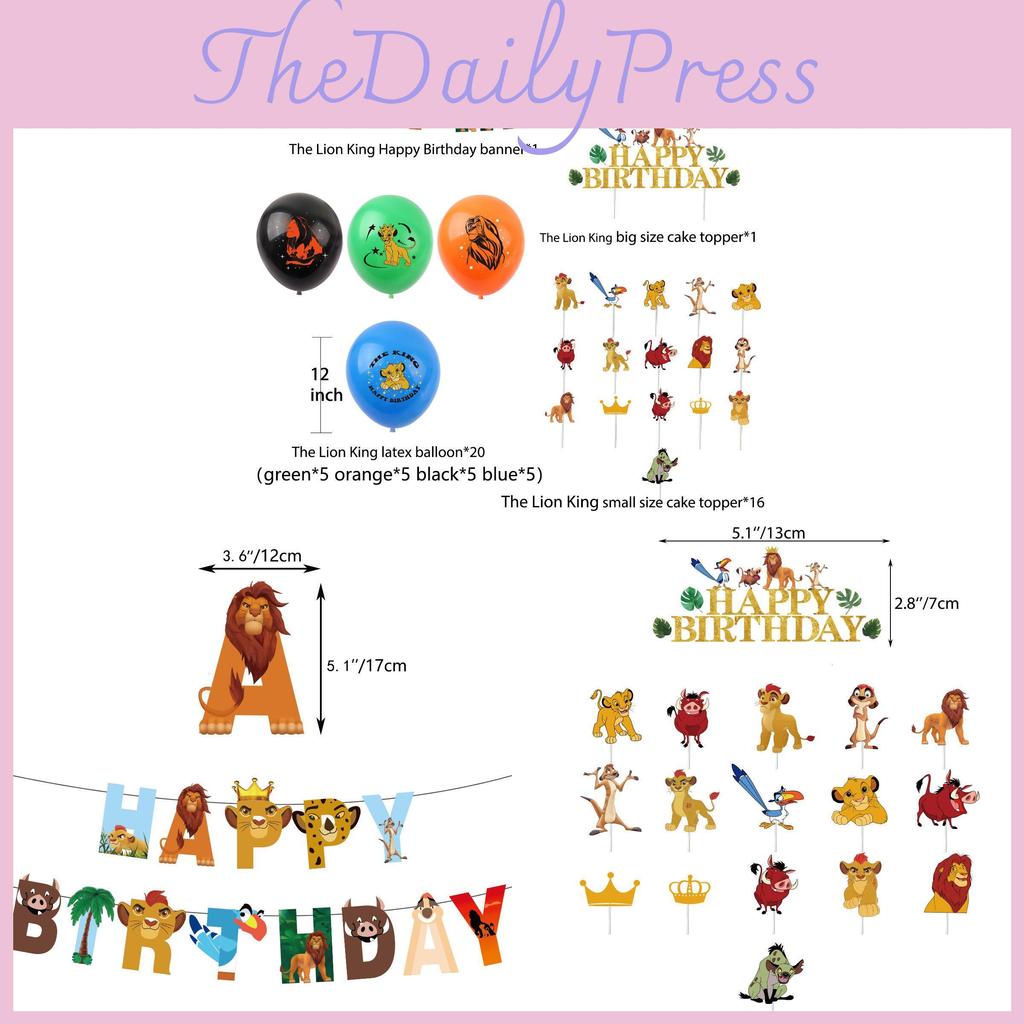 Король Лев Детский Баннер для Дня Рождения Украшения Симба Анимация Вставки для Торта Шары Флажки