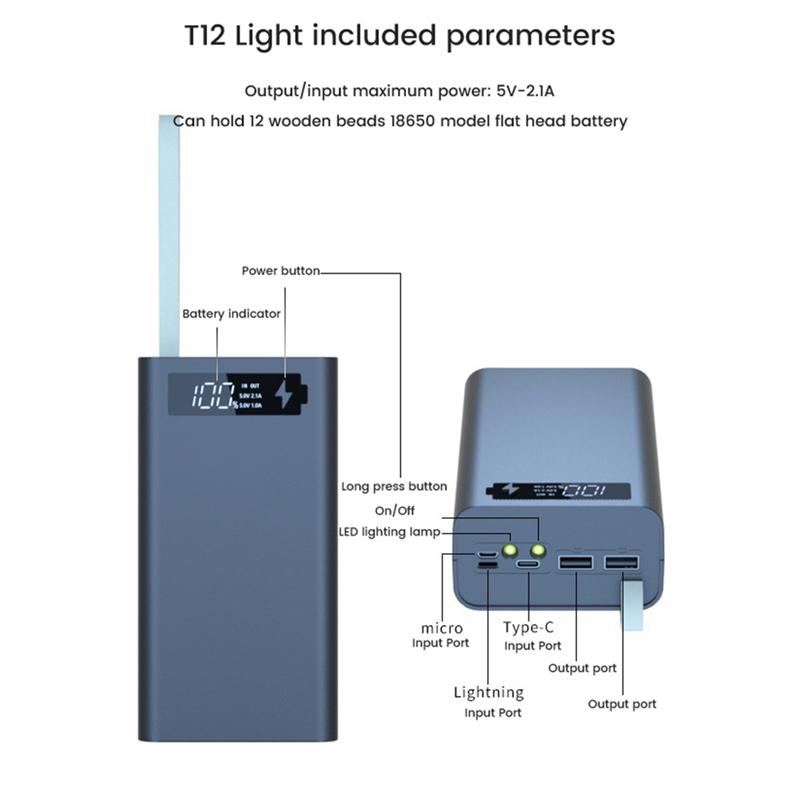 Зарядный корпус для 12 аккумуляторов 18650, без пайки, ящик для хранения аккумуляторов, корпус для DIY Power Bank T12 со светом, коробка для аккумуляторов 18650
