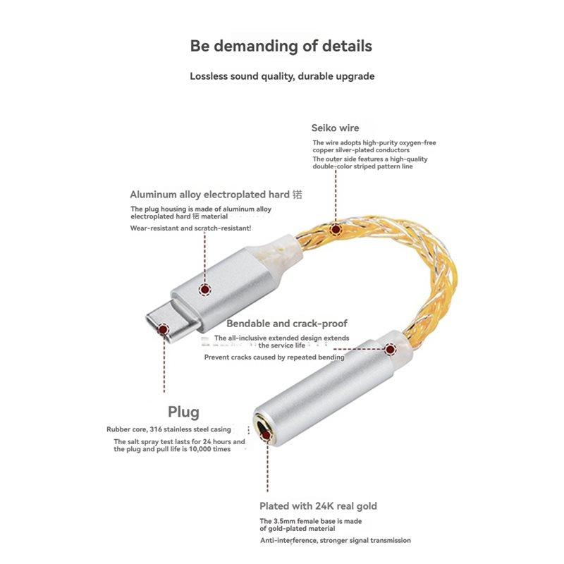 JM6 Type-C To 3.5Mm CX31993 Digital Audio Decoder Portable Amp Hifi DAC Mobile USB Adapter Type-C To 3.5Mm