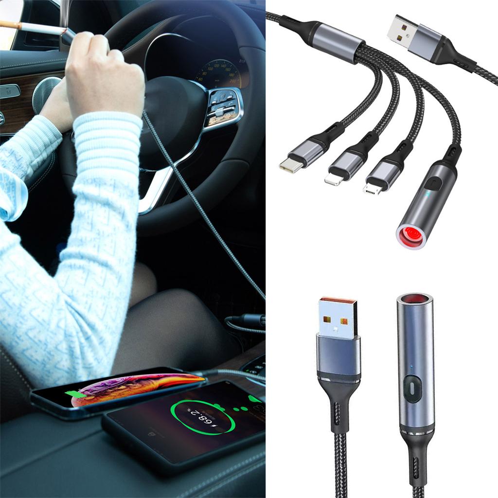 Универсальный мульти-USB кабель 4 в 1, нейлоновая оплетка, шнур для быстрой зарядки, адаптер с разъемами Type-C USB, тип прикуривателя