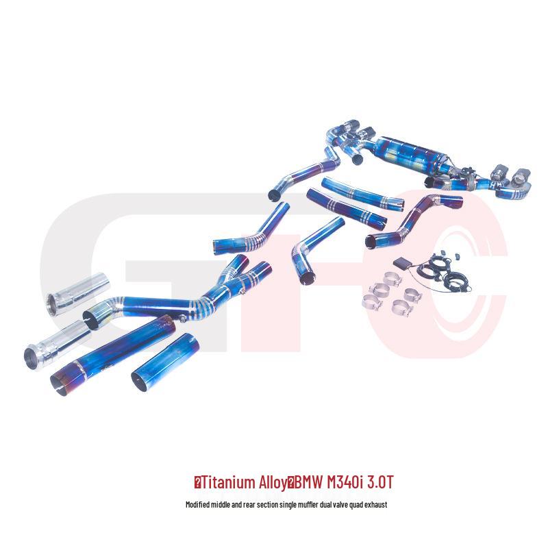 BMW M340I 3.0T Titanium Alloy Quad-Exhaust System for Mid- and Rear-Section Modification: Single-Muffler, Dual-Valve Design.