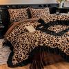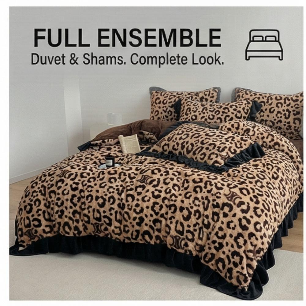 Зимний роскошный комплект постельного белья из четырех предметов с леопардовым принтом и кроличьим мехом - Пододеяльник с дополнительным наполнителем и утолщением для повышенного тепла и комфорта.