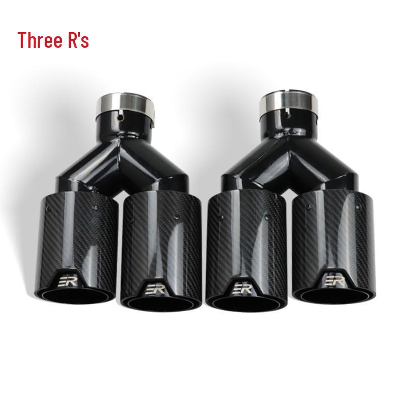 BMW Universal Y-Type Dual Carbon Fiber Black Exhaust Muffler & Tip