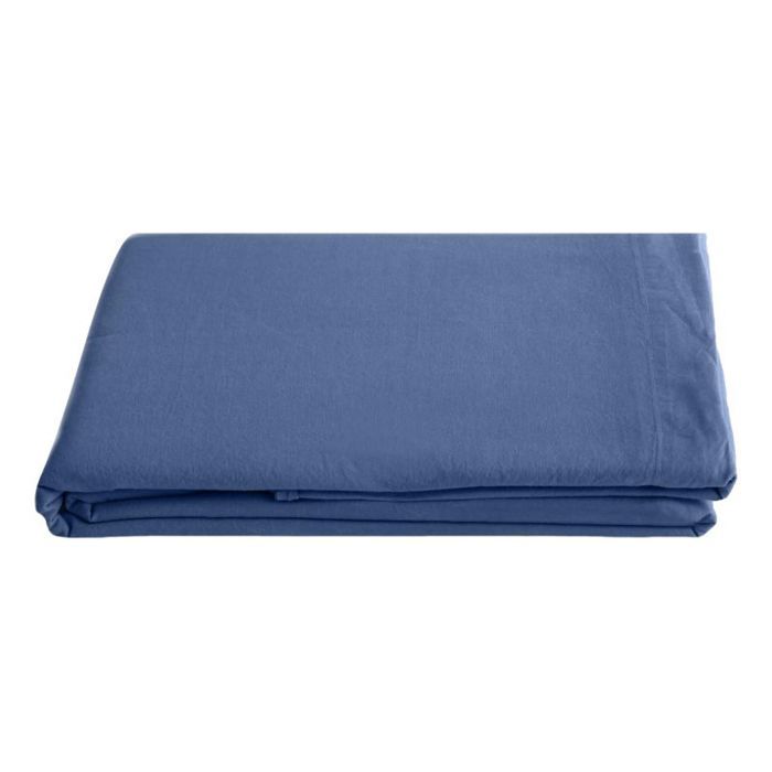 Palace flat sheet, pure washed and dyed cotton, 63 threads/cm² Vent du sud - Palace Indigo - 240 x 290 cm for double bed — купить товар онлайн с бесплатной доставкой по всему миру!