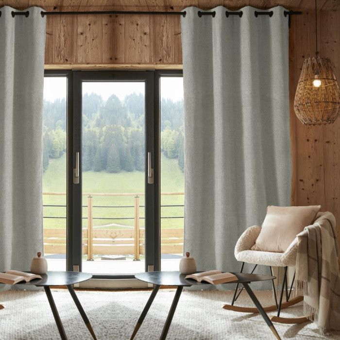 Lot de 2 rideaux occultants phoniques et thermiques doublés polaire "Bjorn" 100% opaque Le fil d'Ariane - Bjorn Eucalyptus - 2 Panne