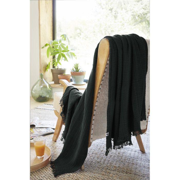 Plaid à franges "Gaïa" toutes dimensions "Gaze de Coton" l'Effet Papillon - Gaia Sapin - 130 x 160 cm