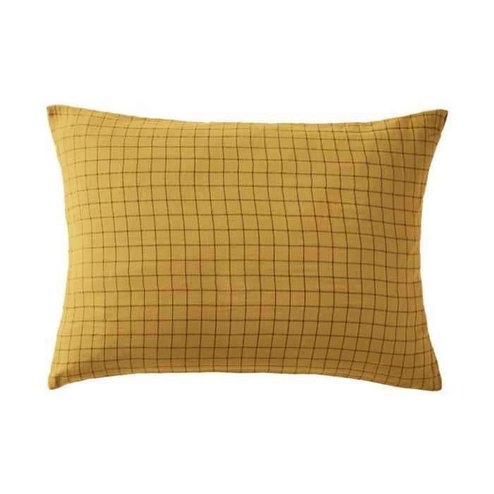 Taie d'oreiller Tissé-teint petits carreaux Déco "Gaïa Mix" 60 x 60 cm & 50 x 70 cm "Gaze de Coton" - Gaïa Mix Safran - 50 x 70 cm