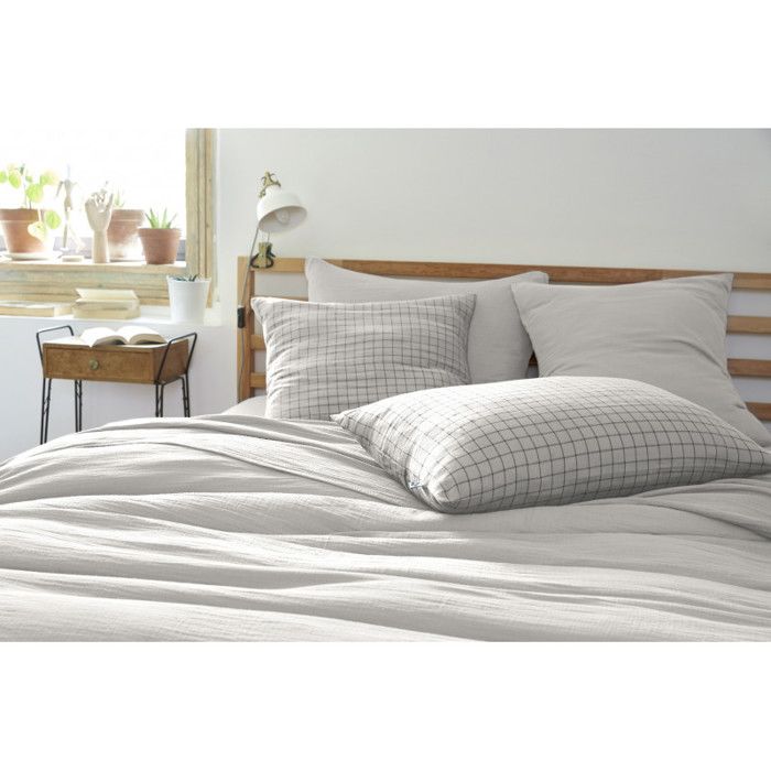 Наволочка Тканая-крашеная мелкая клетка Деко «Gaïa Mix» 60 x 60 см & 50 x 70 см "Gaze de Coton" - Gaïa Mix Nuage - 60 x 60 см