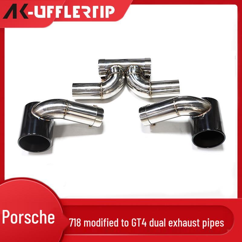 Porsche 718 GT4 Upgrade: Stainless Steel Dual Exhaust with Muffler & Black Tailpipe Tips — купить товар онлайн с бесплатной доставкой по всему миру!