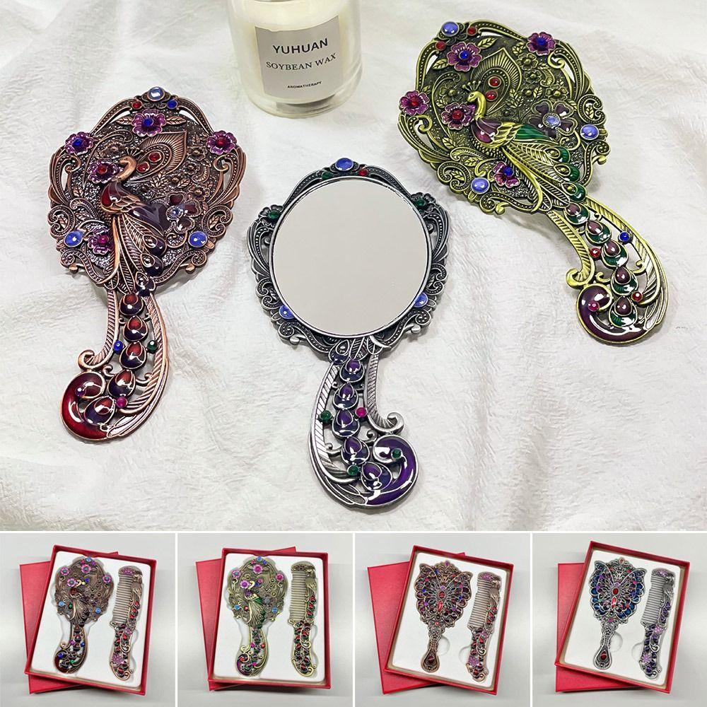 Зеркало косметическое ручное ретро с металлической ручкой, раскладное, с рисунком павлина — купить товар онлайн с бесплатной доставкой по всему миру!