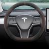 Ультратонкая замшевая накладка на руль для Tesla Model 3/Y/X, всесезонная.