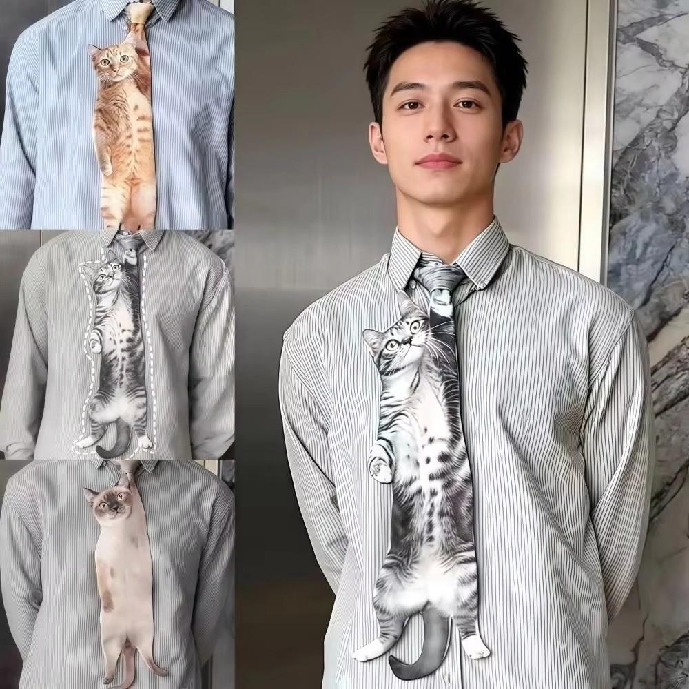 Уникальный галстук с рисунком животных Реалистичный Новый галстук Костюмированная вечеринка Галстук в форме кошки Праздничные собрания