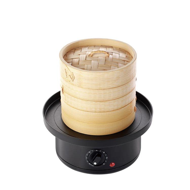 LITHON Dim Sum Ranman Electric Steamer for Frozen Tabletop Chinese Steamer for Home Two Timer Easy Cooking for Authentic Includes Guide and Recipes