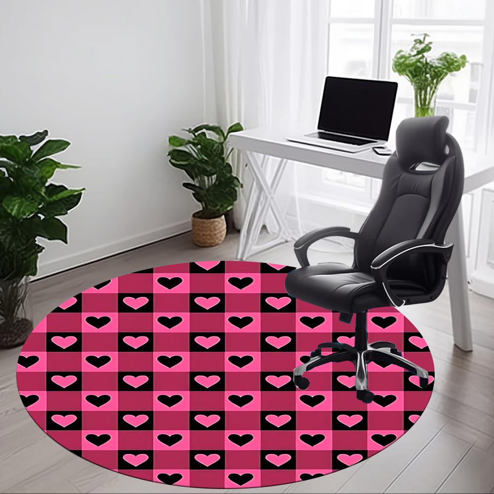 1pc Heart Checkered PatternChair Carpet for Office, Indoor Non-Slip Washable Polyester Fiber Carpet, Mat For Office, Machine Washable