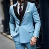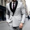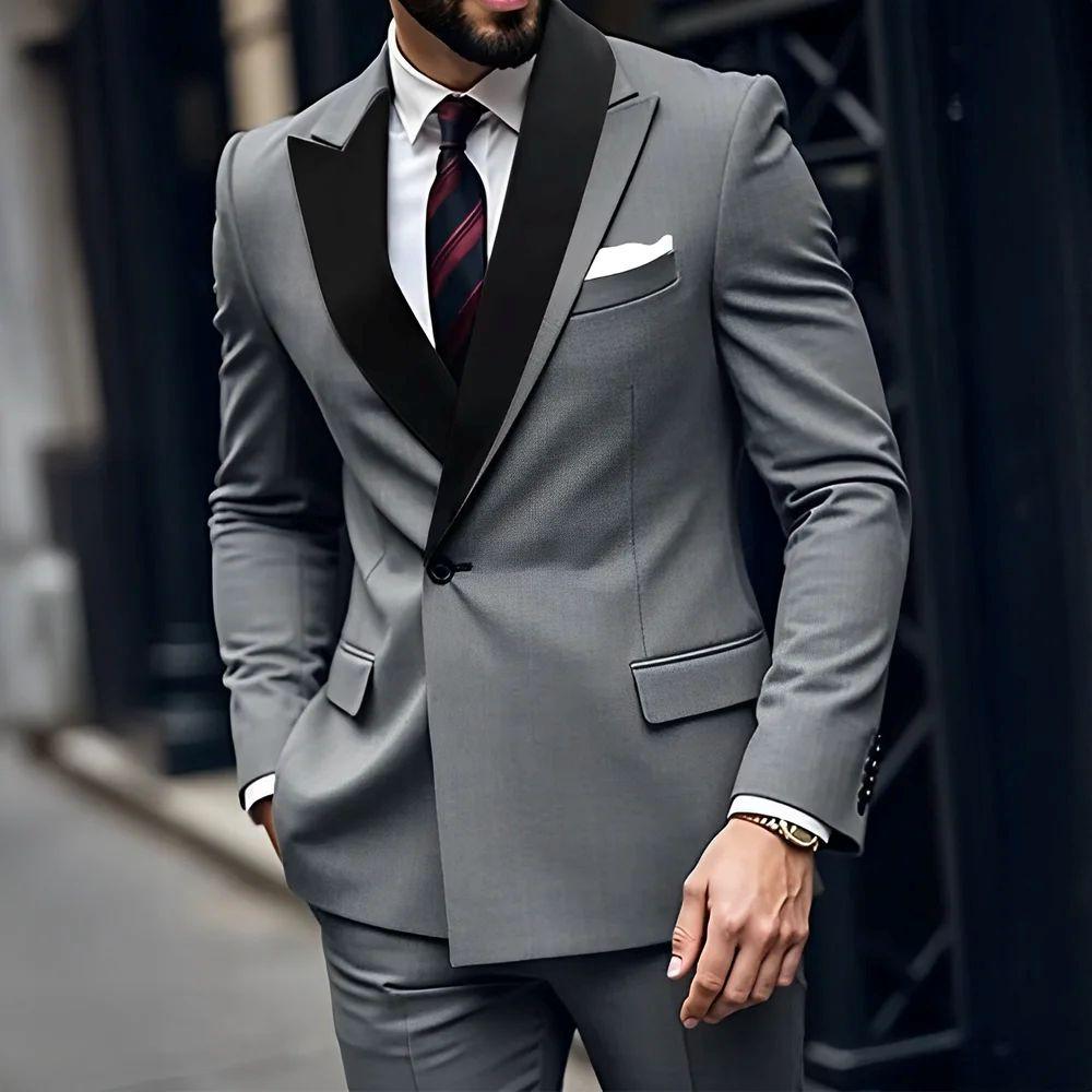 Уникальный дизайн лацканов Мужские костюмы 2 предмета Комплекты пиджак и брюки Одна пуговица Складки Элегантный пиджак Свадебный Жених Мужская одежда