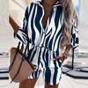 Летняя женская мода с принтом на пуговицах, рубашка + шорты, повседневный комплект из двух предметов