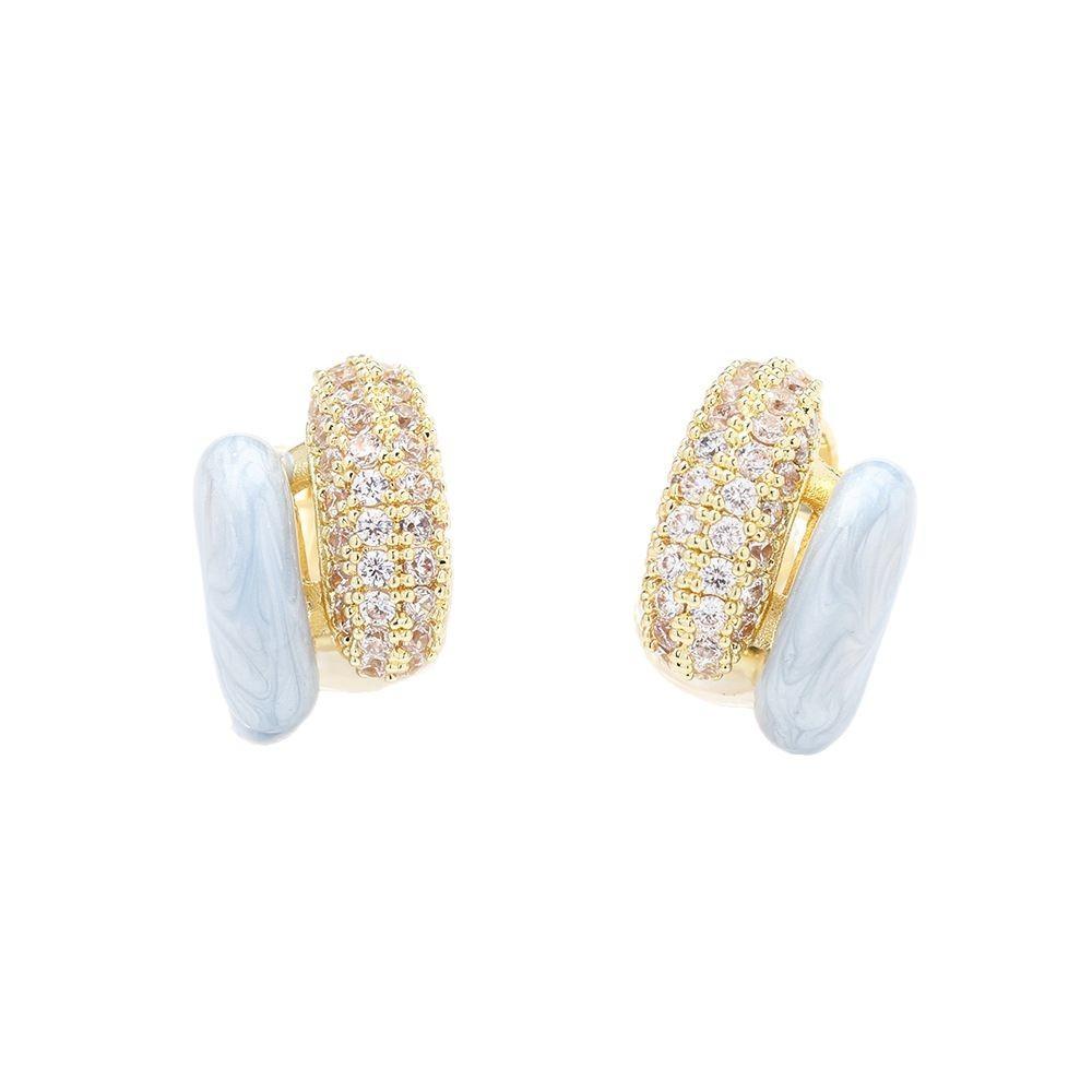 Korean sweet niche macaron color dripping oil inlaid stone earrings gold-plated simple and versatile ear piercing ear clip women's earrings