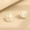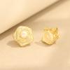 Rose stud earrings, silver needle earrings, pearl camellia ear clips, elegant and delicate small fragrant style, gold and silver two-color stone-inlai
