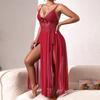 Кружевная жемчужная комбинация для сна с глубоким вырезом и высоким разрезом, прозрачная сетка, длинная, сексуальная женская одежда для дома 898, женственная, смелая одежда для сна с романтическими цветочными деталями