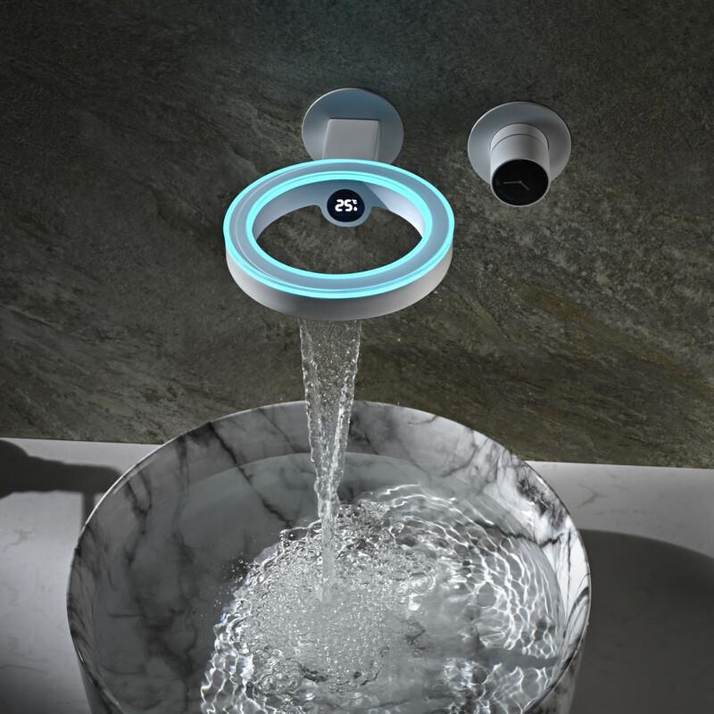 Digital Display White Donut Wall-Mounted Hot Water Faucet